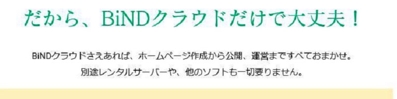 これにより、容量を気にせずサイトを作成することができます。さらに、プロコース以上では、サイトデータ以外のファイルもアップロードできるFTP機能やWebメール機能など、さまざまな機能が付いているため、BiNDクラウドをレンタルサーバーとして利用することもできます。